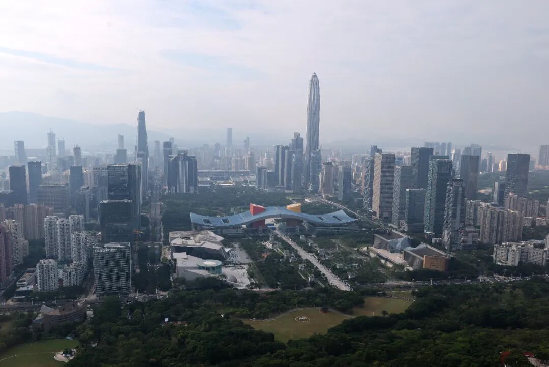 这是第十五届全运会火炬接力启动仪式现场(直升机航拍,11月2日拍摄)。新华社记者 梁旭 摄 新华社消息:第十五届全运会火炬接力开幕式已经开始。新华社消息:第十五届全运会第一棒火炬手薛其坤手持火炬在深圳开始跑步。薛其坤,南方科技大学校长、中国科学院院士。
