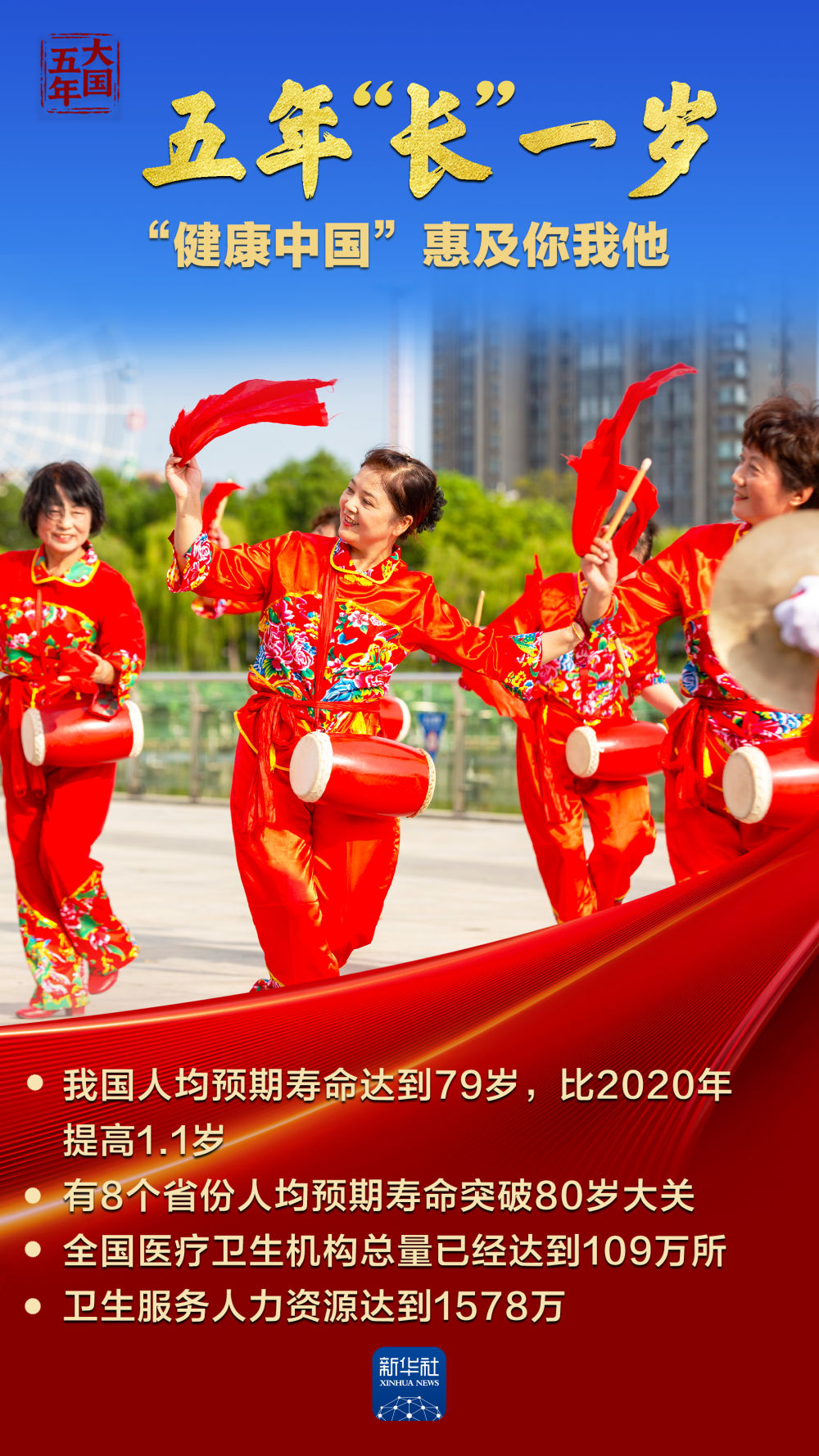 这是一组令人欣喜的数据:“十四五”期间,我国人均预期寿命提高一年多;建成全球最大的疾病预防控制体系和医疗服务体系;超过100万个医疗卫生机构遍布城乡,90%以上的居民可在15分钟内到达最近的医疗服务点……大病有保障,“老少皆宜”有保障。五年来,“网上问诊”、“跨省报销”、“考试互认”等举措不断改变看病“难”“贵”。让我们跟随海报,感受更加公平、更加便捷、系统、持续、优质、高效的“健康中国”如何增进人类福祉、幸福感和安全感。策划:凌维嘉 统筹:曹建立 文案/制作:刘亚旭n、李嘉伟